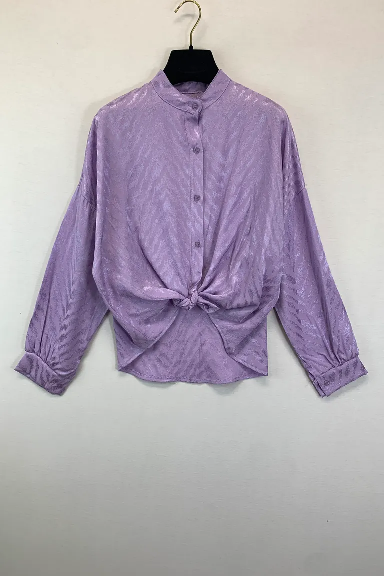 Camicia con collo alla coreana, motivo lucido