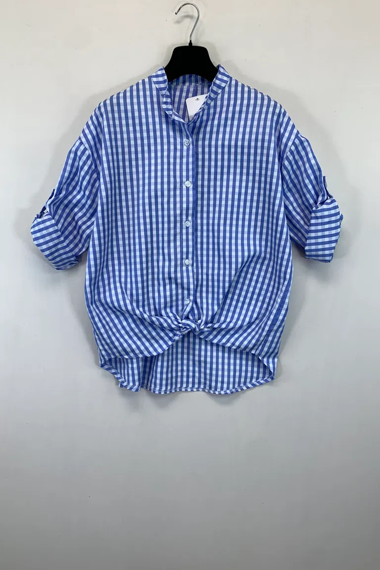 Camicia collo alla coreana a quadri grandi