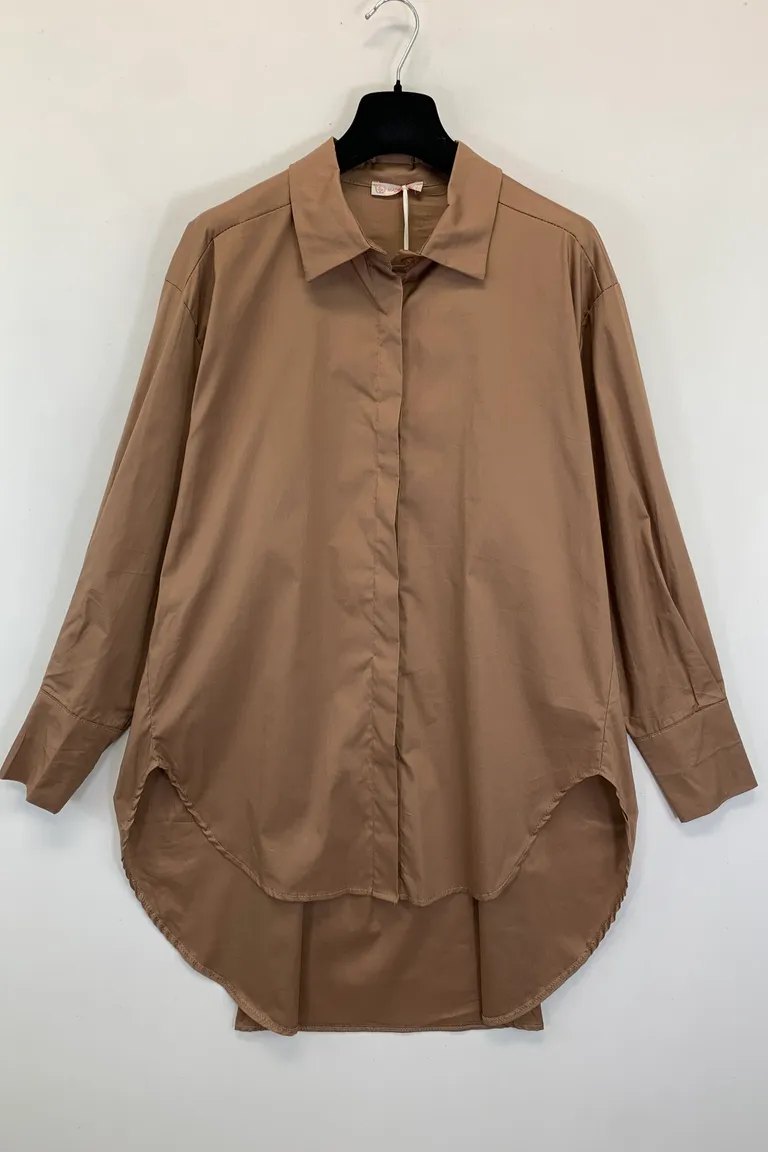 Camicia over in cotone, più lunga dietro