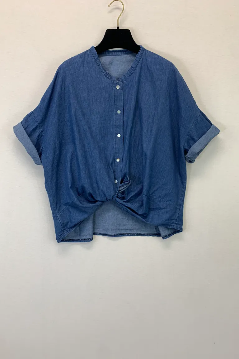 Camicia coreana chambray, effetto jeans