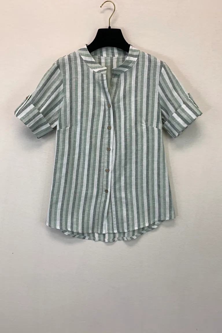 Camicia coreana a righe, misto lino