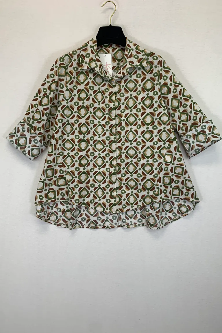 Camicia svasata in fantasia, più lunga dietro