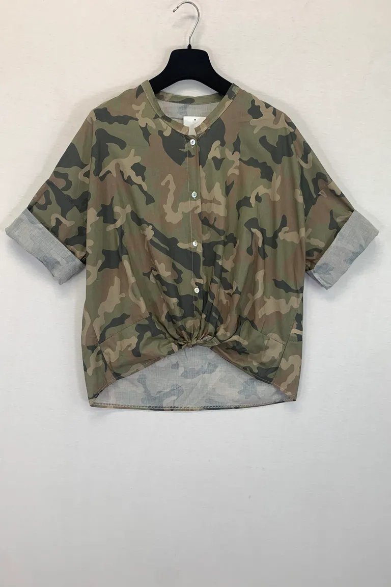 Camicia coreana con nodo, in fantasia camouflage