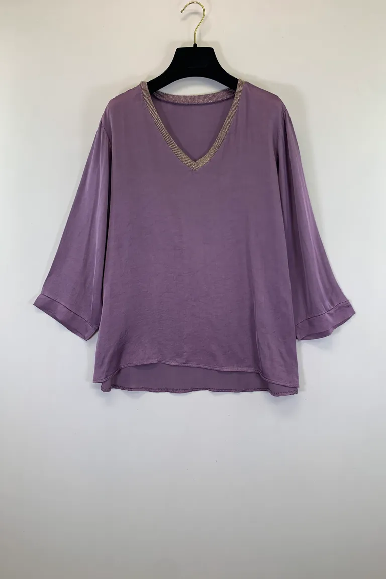 Blusa scollo a V con lurex in raso misto seta