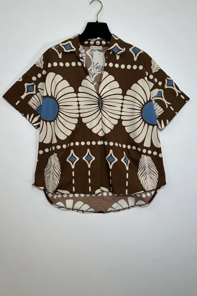Camicia a V ampia con piega davanti, fantasia geometrica