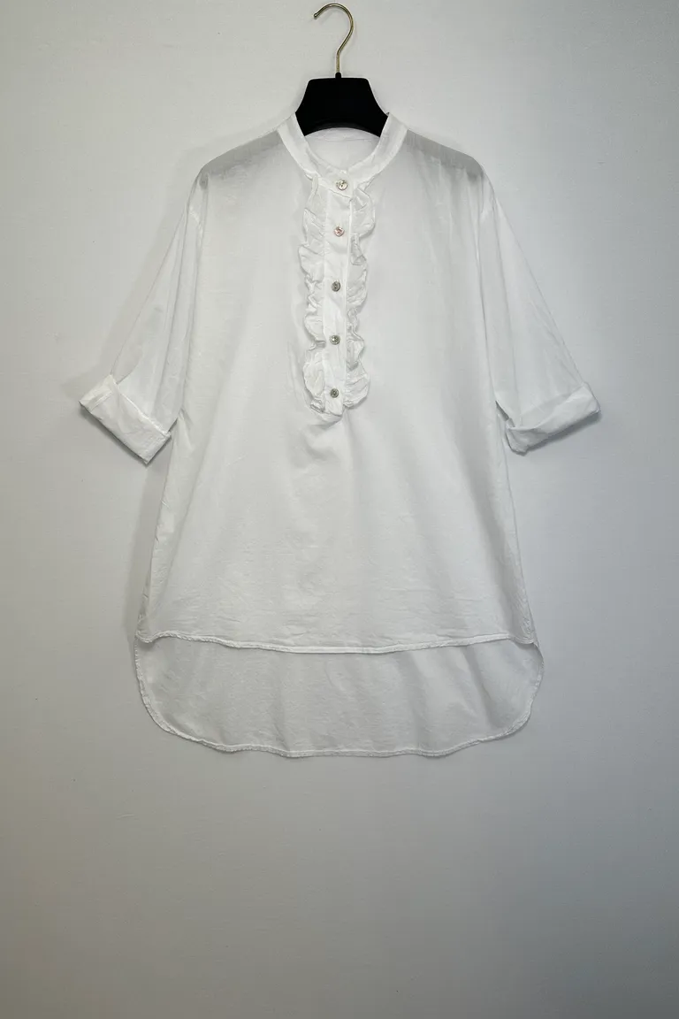 Camicia lunga in mussola di cotone con rouches