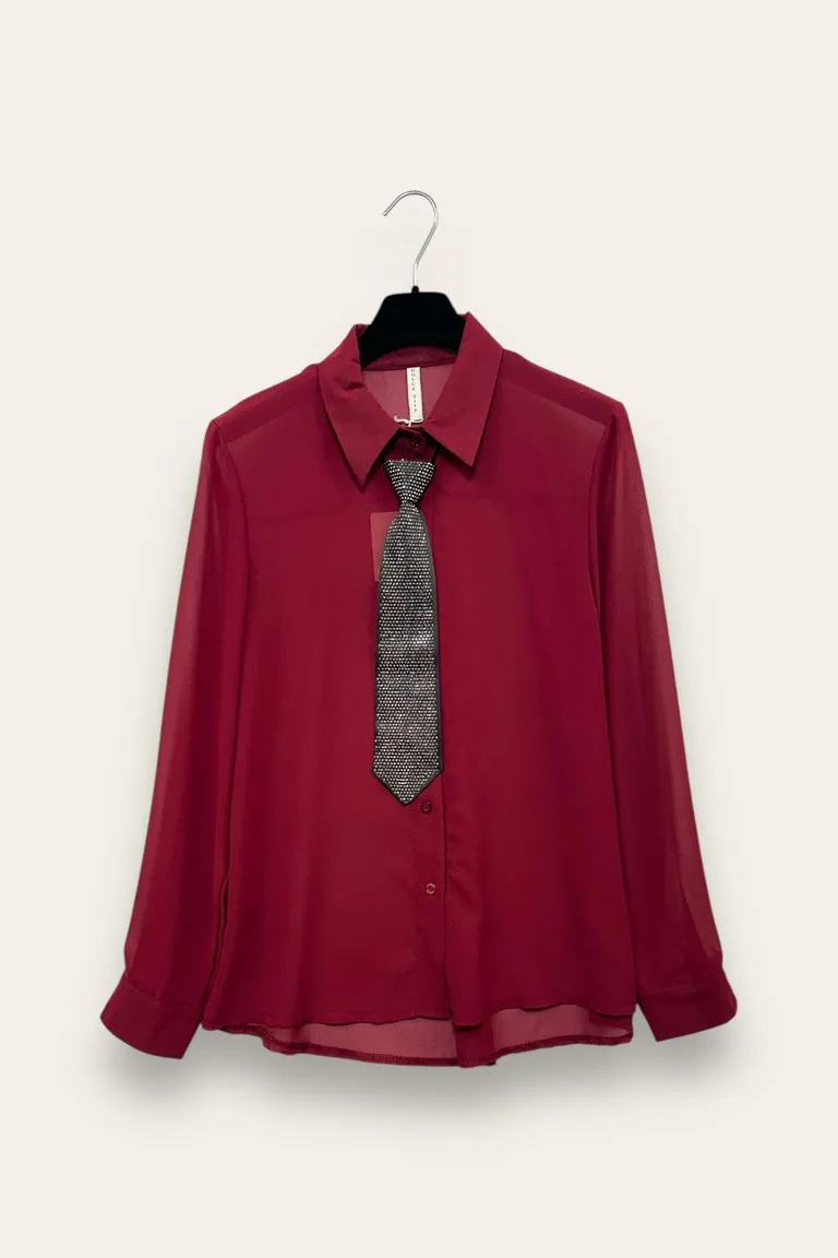 Camicia in georgette con cravatta con strass