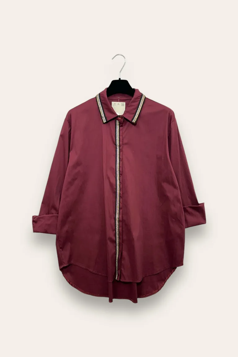Description Camicia ampia, profili con ricamo in lurex