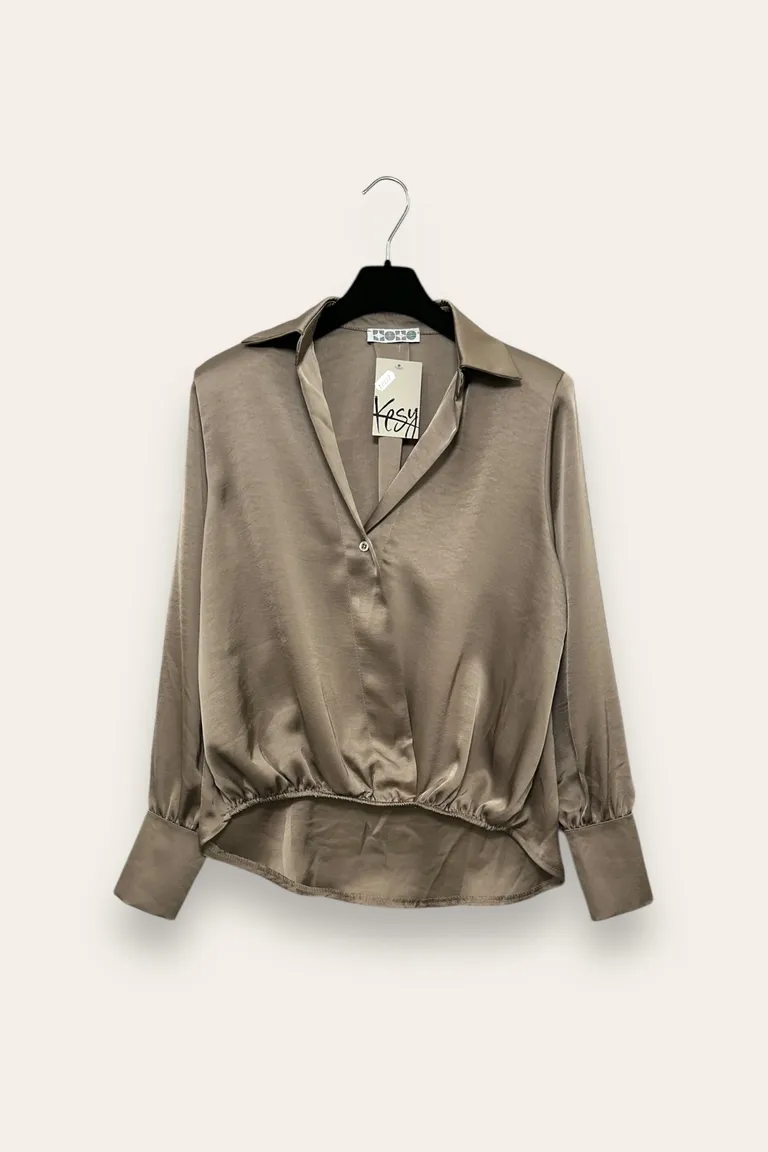 Camicia in raso a portafoglio con elastico al fondo