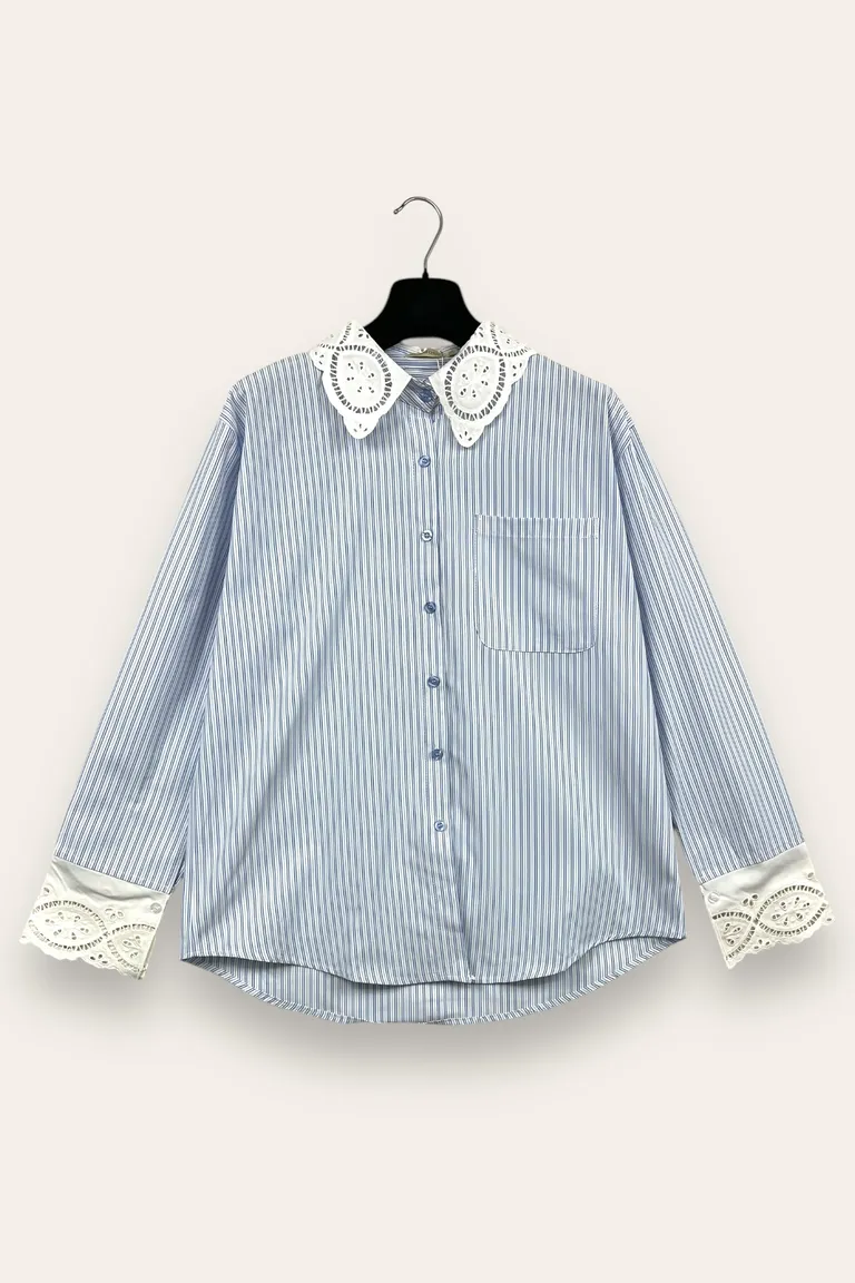 Camicia rigata con inserti in sangallo