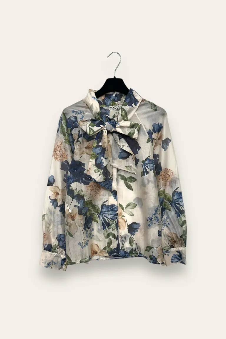 Description Camicia in fantasia floreale con fiocco al collo