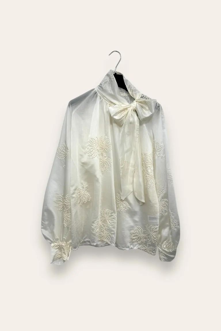Camicia over con ricami e fiocco al collo