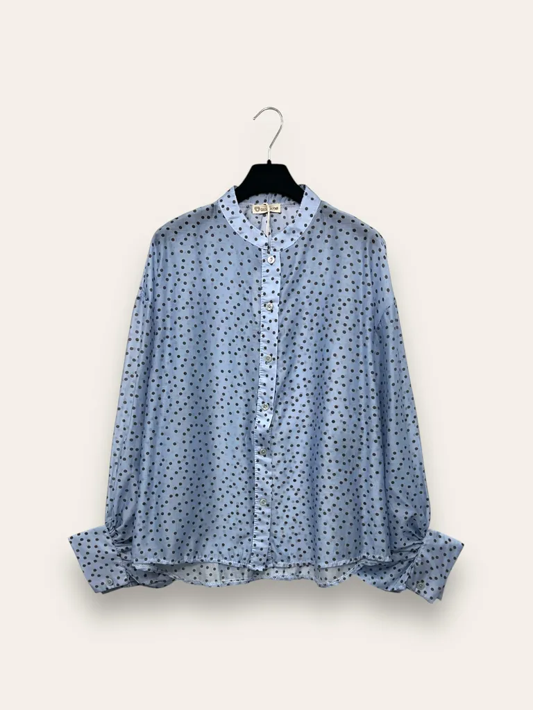 Description Camicia coreana a pois con manica a palloncino