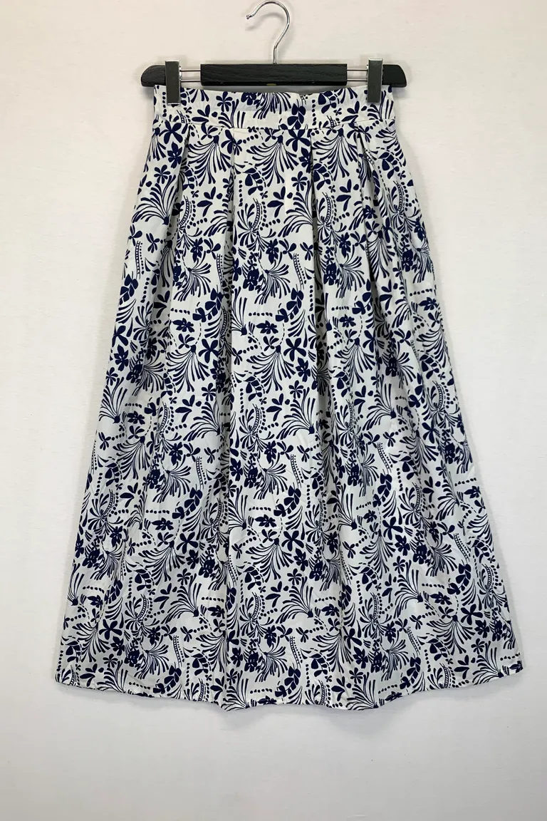 Description Gonna lunga in cotone in fantasia, con tasche ed elastico retro vita