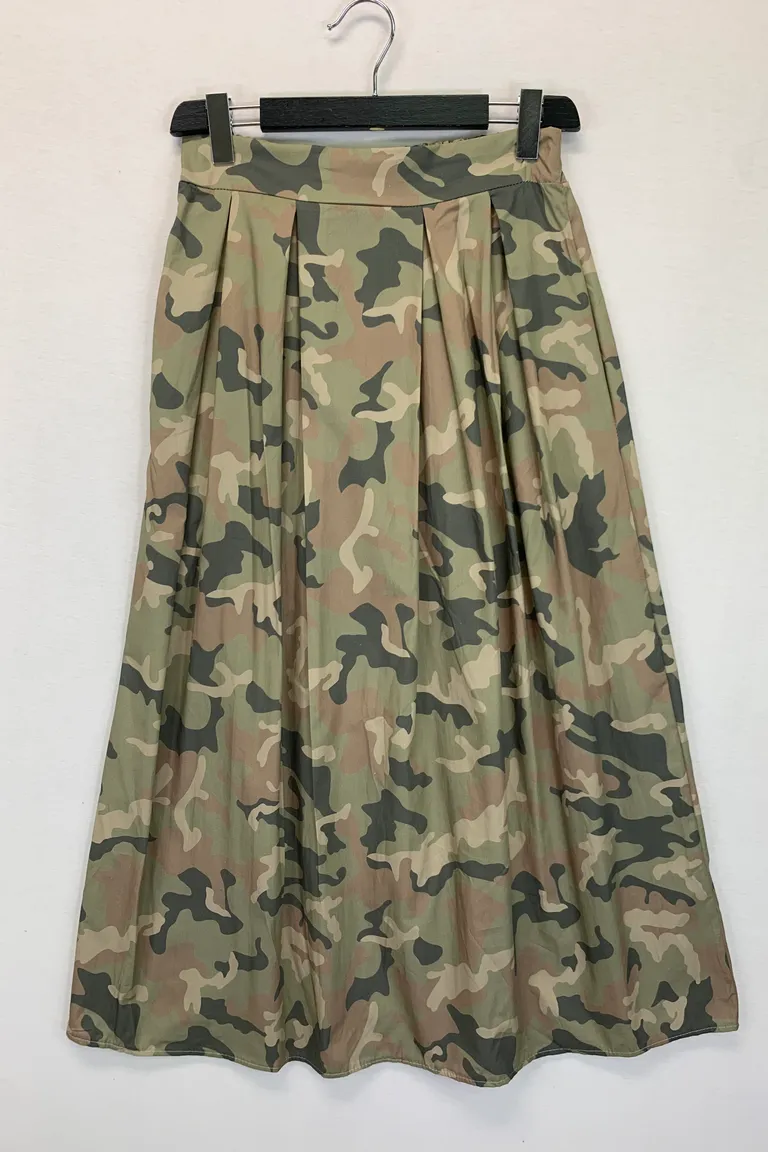 Description Gonna lunga in cotone in fantasia, con tasche ed elastico retro vita
