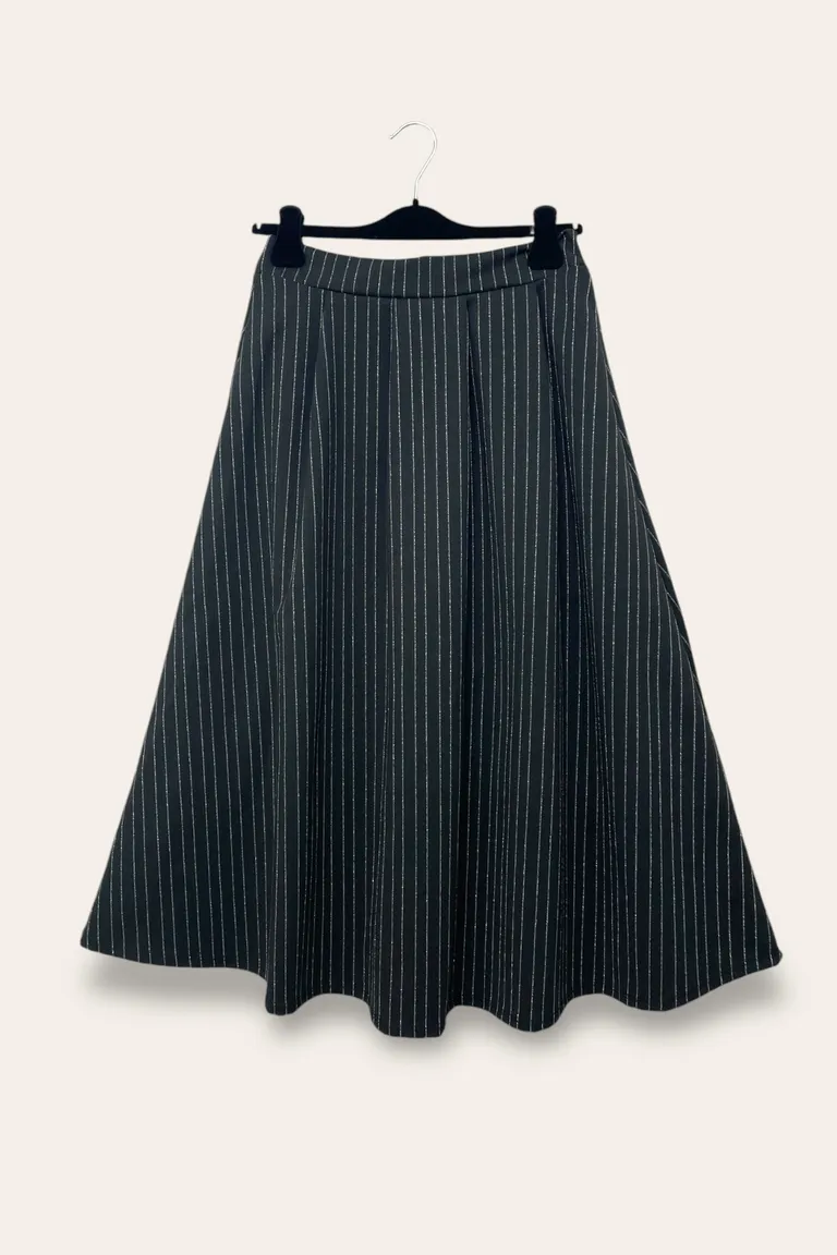 Description Gonna lunga punto milano con righe in lurex e elastico retro vita