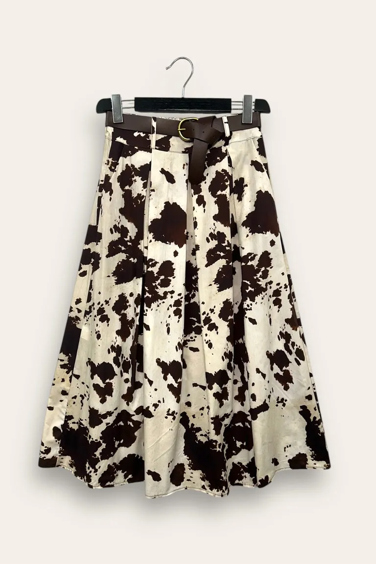 Gonna midi fantasia cavallino mucca, elastico retro vita