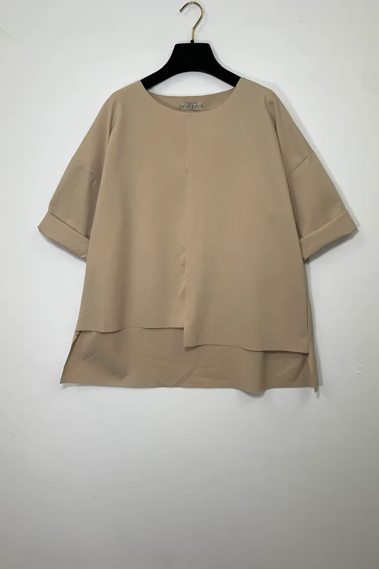 Blusa punta milano taglio vivo, manica a 3/4