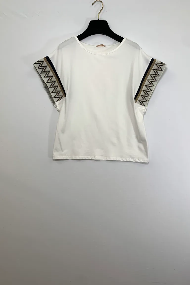 Description Maglietta elastico in fantasia geometrica al giro manica