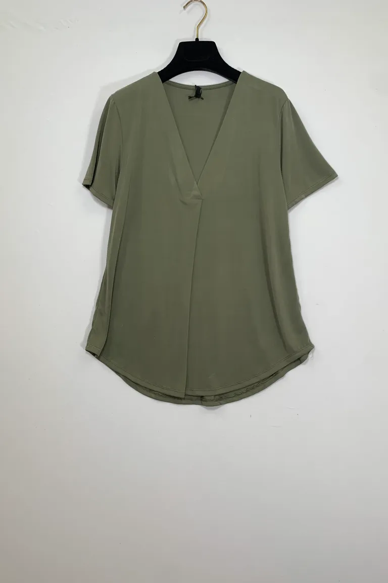 Maglia maniche corte scollo a V con piega davanti