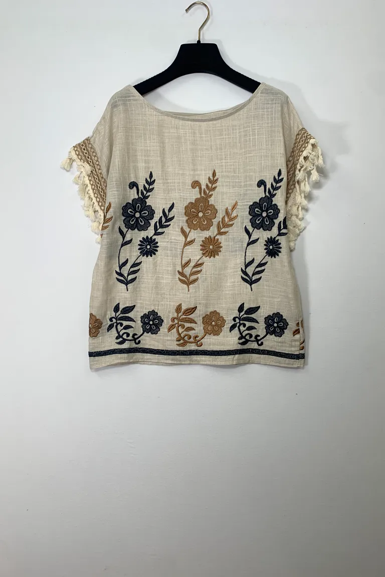 Maglietta miso lino con ricami