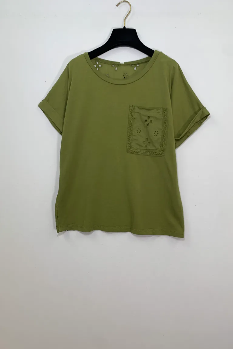 Maglietta ampia con tasca e retro in sangallo