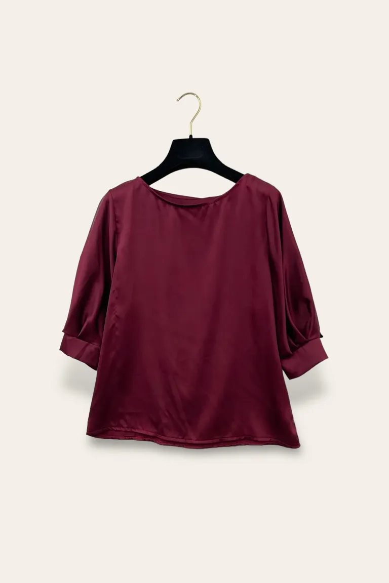 Blusa in raso, manica 3/4 a palloncino