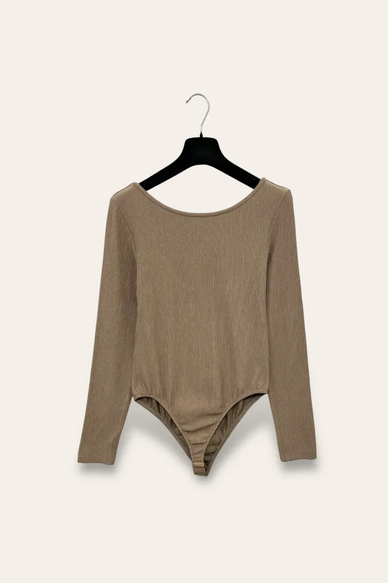 Body a costine con scollo sulla schiena