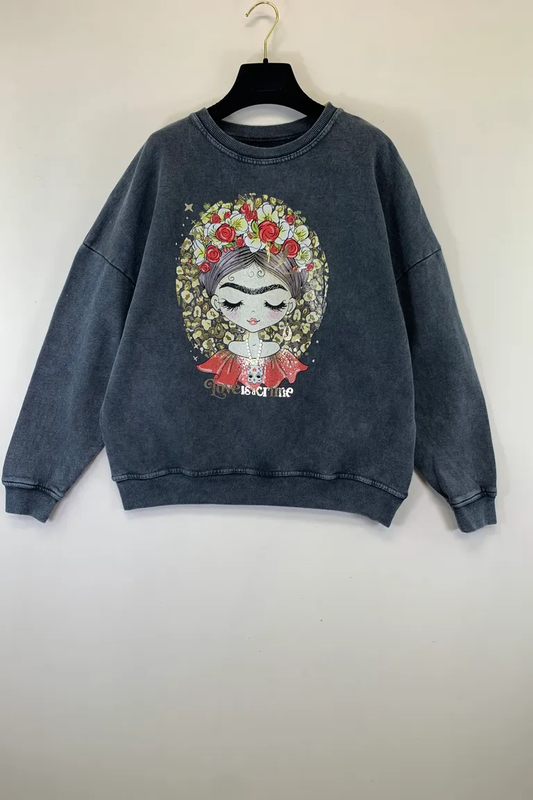 Felpa stone wash con stampa Frida
