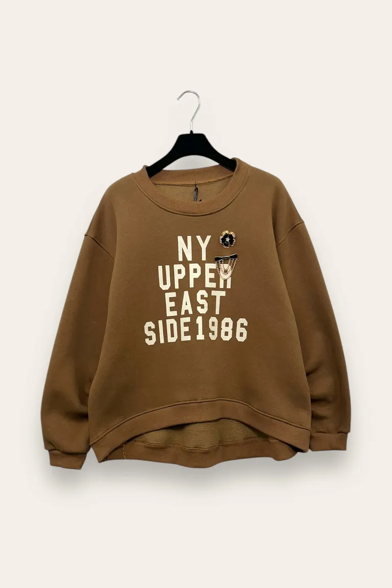 Felpa con scritta stampata e spille gioiello