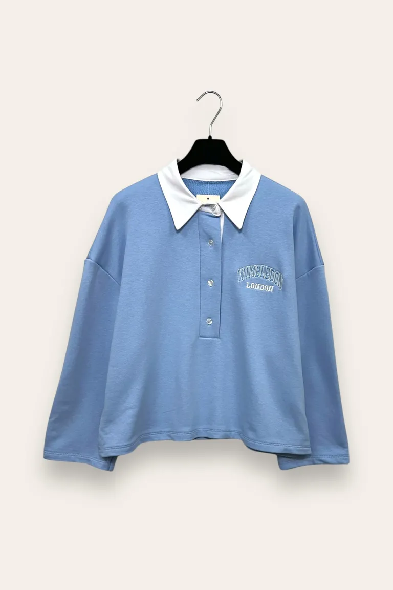 Felpa a polo con scritta ricamata davanti