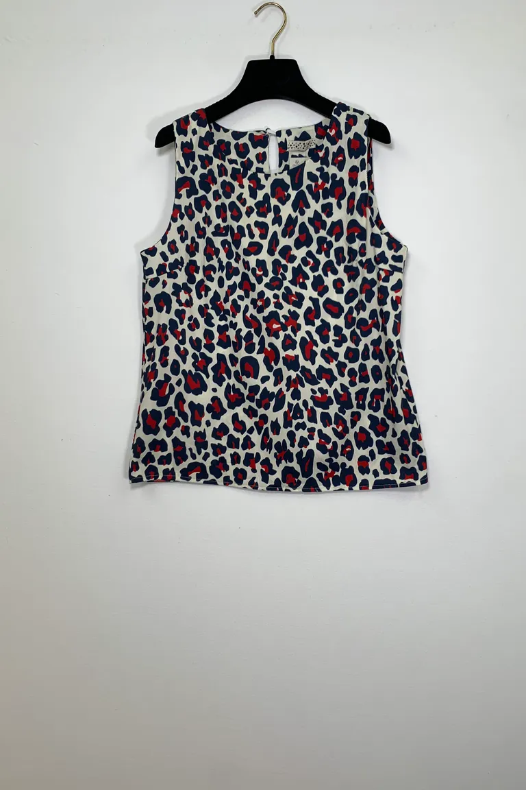 Canotta in fantasia con bottone dietro il collo