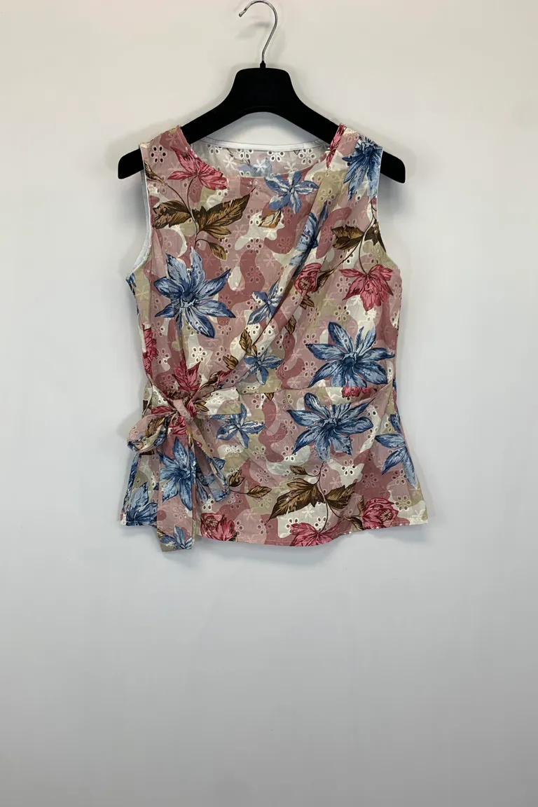 Description Canotta in sangallo in fantasia, con fiocco sul fianco