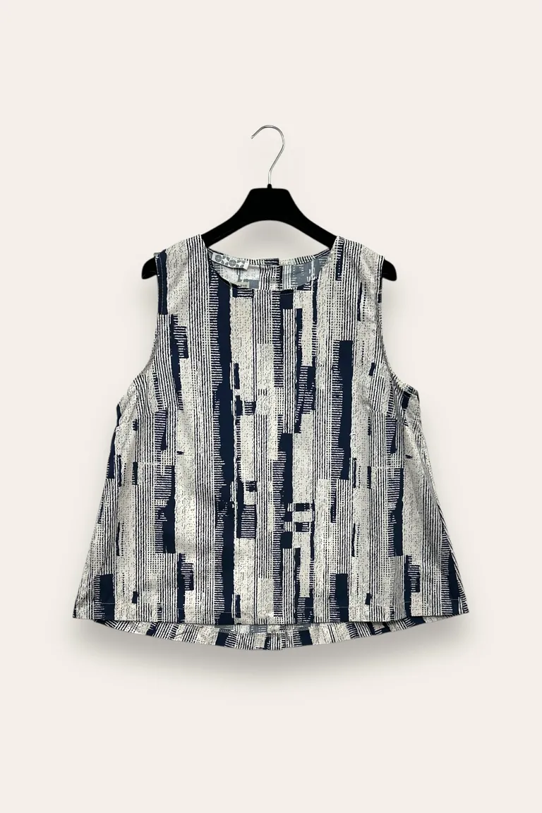 Canotta ampia in fantasia, bottoni lungo la schiena