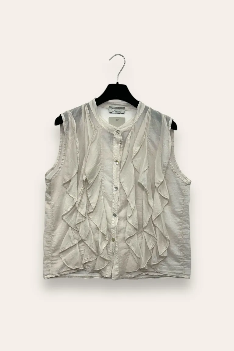 Description Camicia smanicata con volant davanti in mussola di cotone