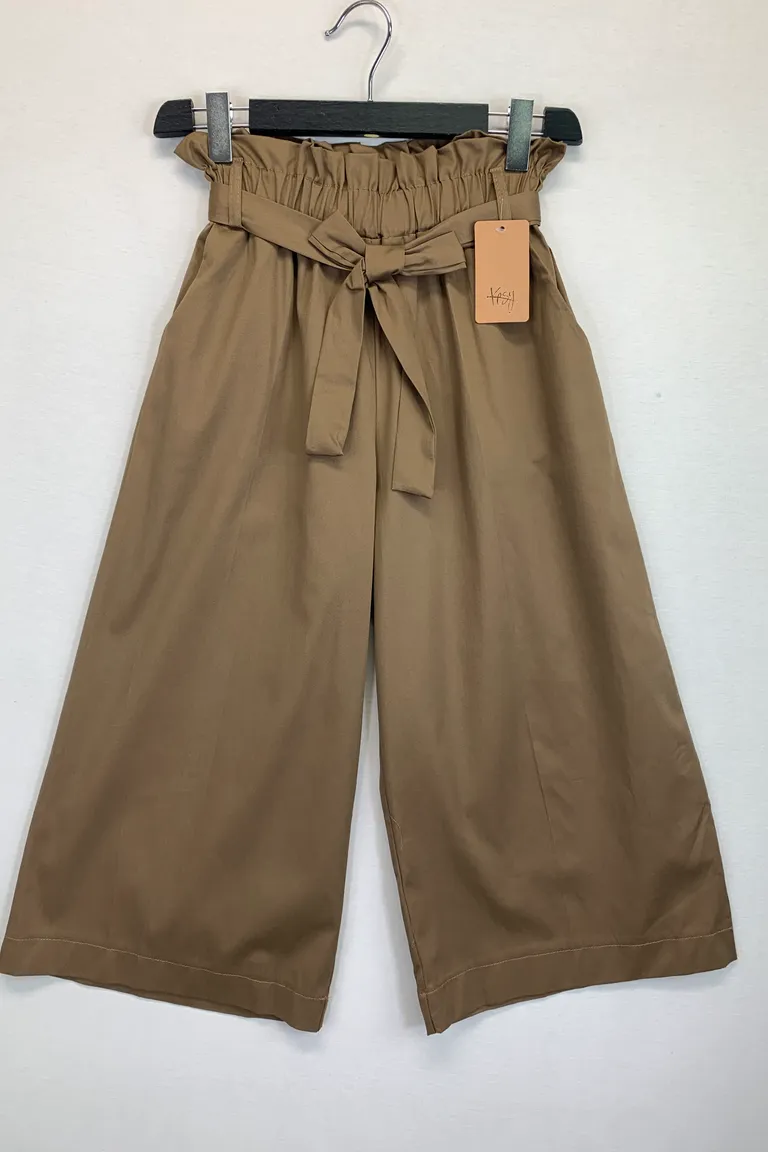 Description Pantalone gaucho vita alta con fusciacca ed elastico in vita