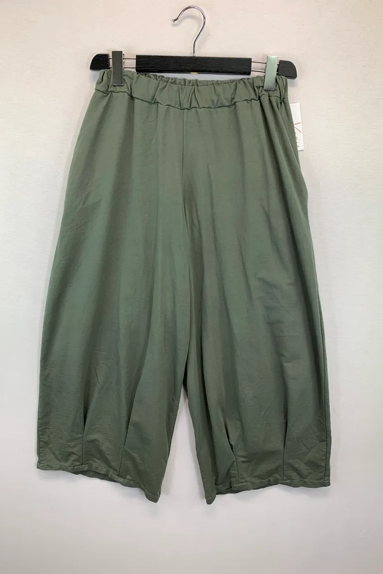 Pantalone gaucho in felpa garzata, con pence al fondo