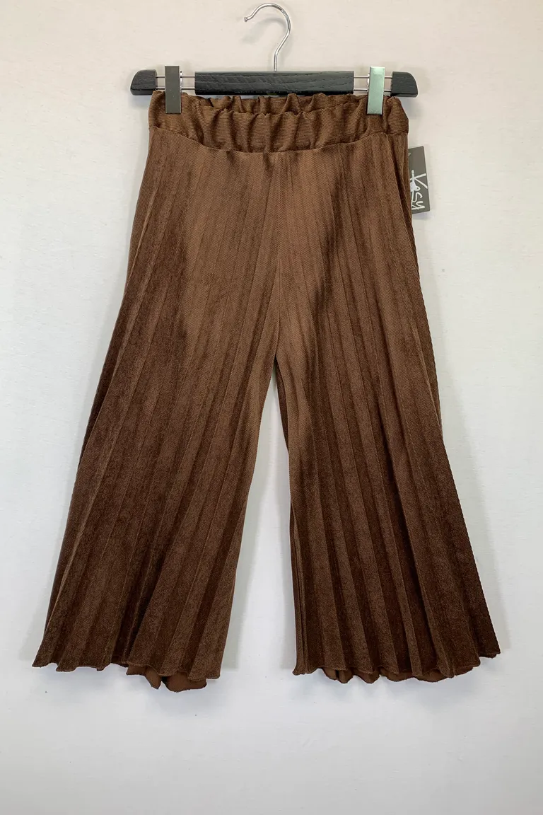 Description Pantagonna plissettato in velluto millerighe, elastico in vita
