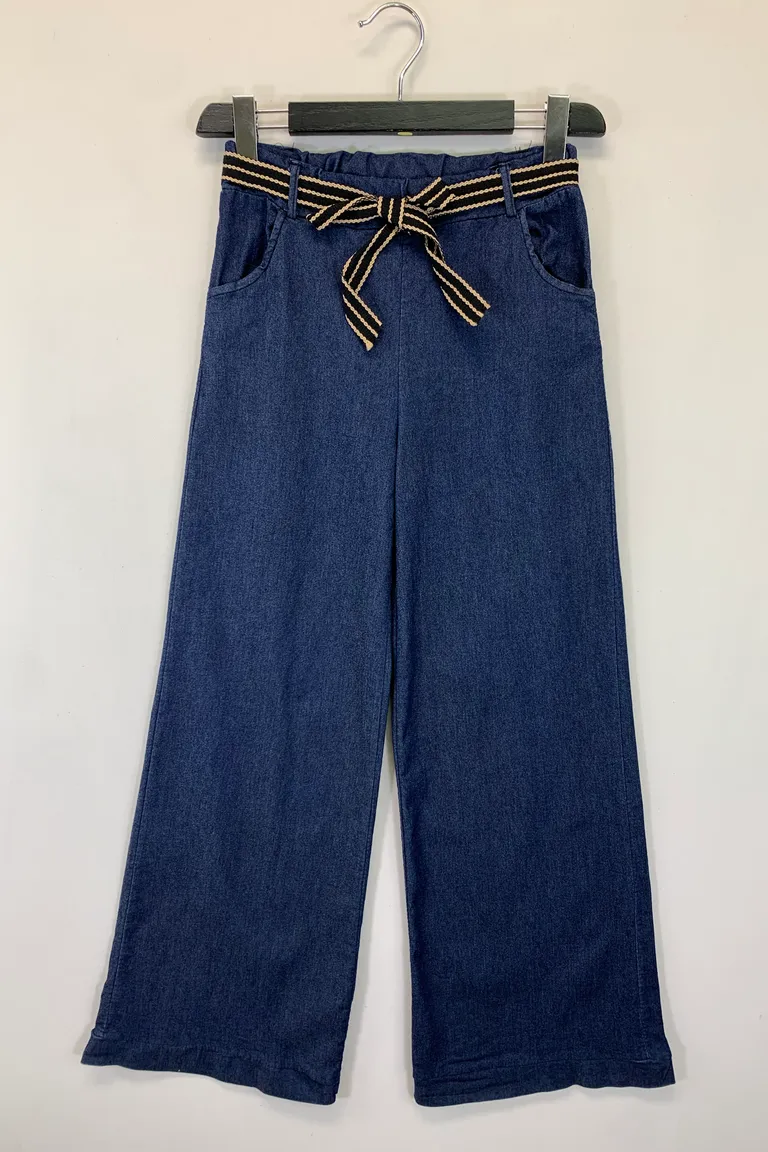 Description Pantalone a palazzo in tessuto chambray, effetto jeans, elastico in vita