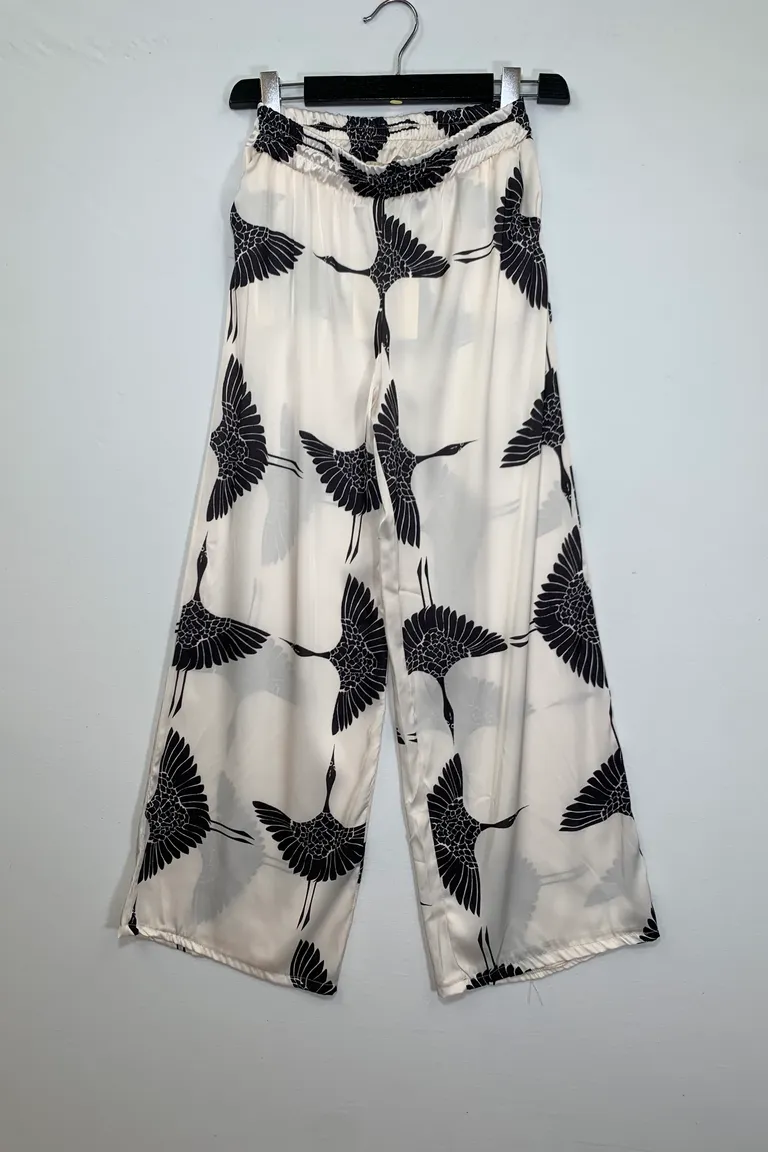 Description Pantalone a palazzo in raso in fantasia