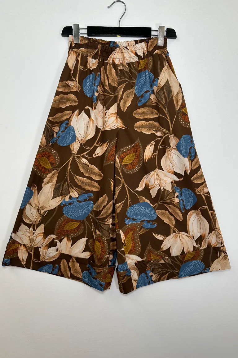 Pantalone gaucho in fantasia, elastico in vita