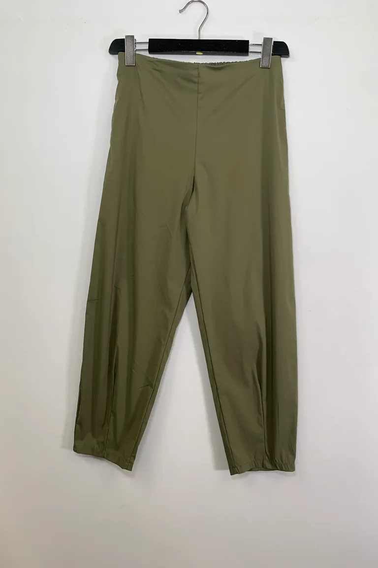 Description Pantalone a carota in cotone, elastico retro vita e pinces al fondo