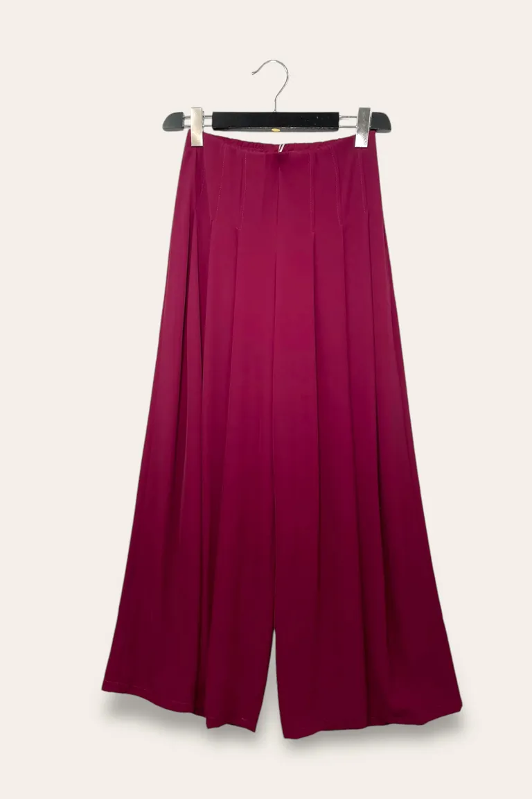 Pantalone a gamba larga con pieghe, zip sul fia