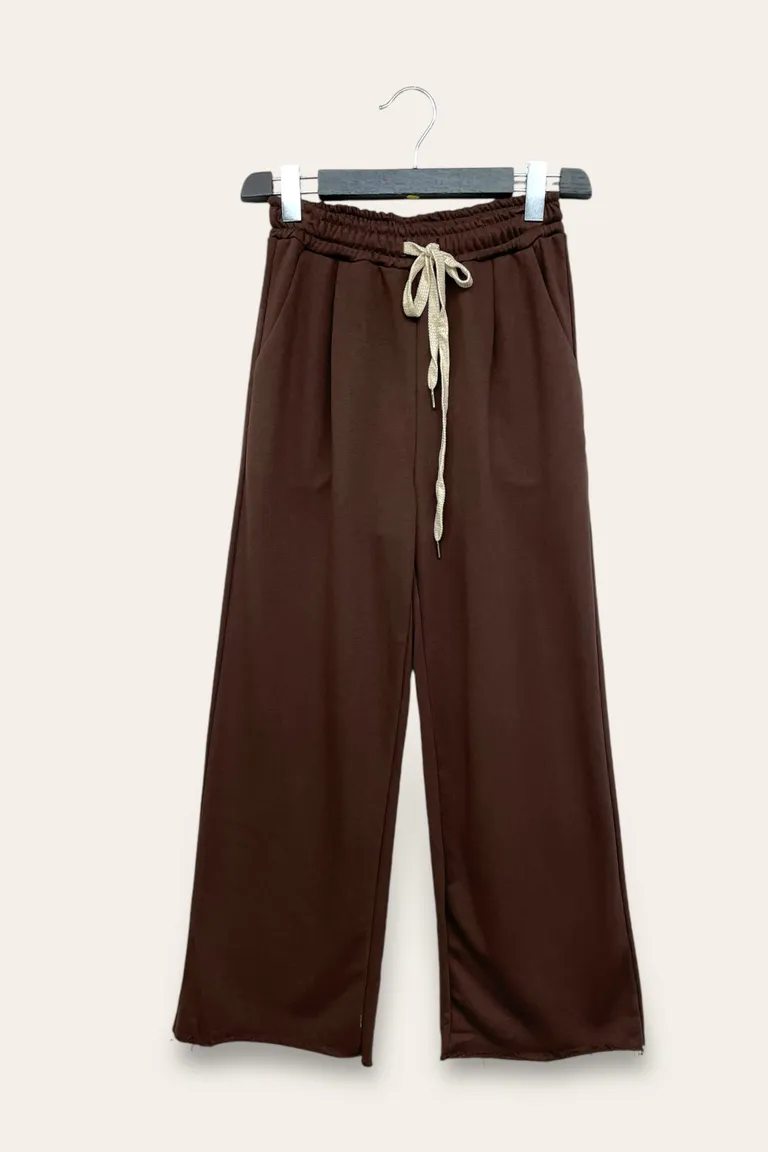 Pantalone a palazzo in felpa garzata con coulisse
