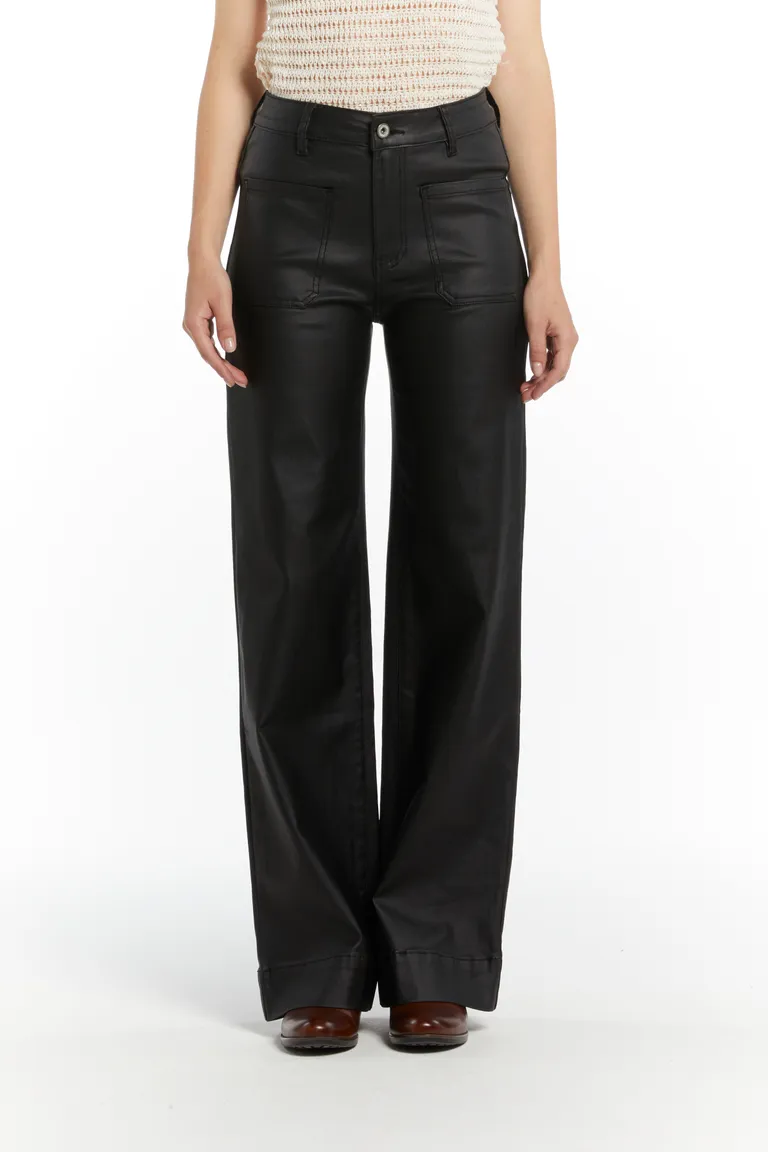 Description Pantalone a palazzo in ecopelle con tasche davanti