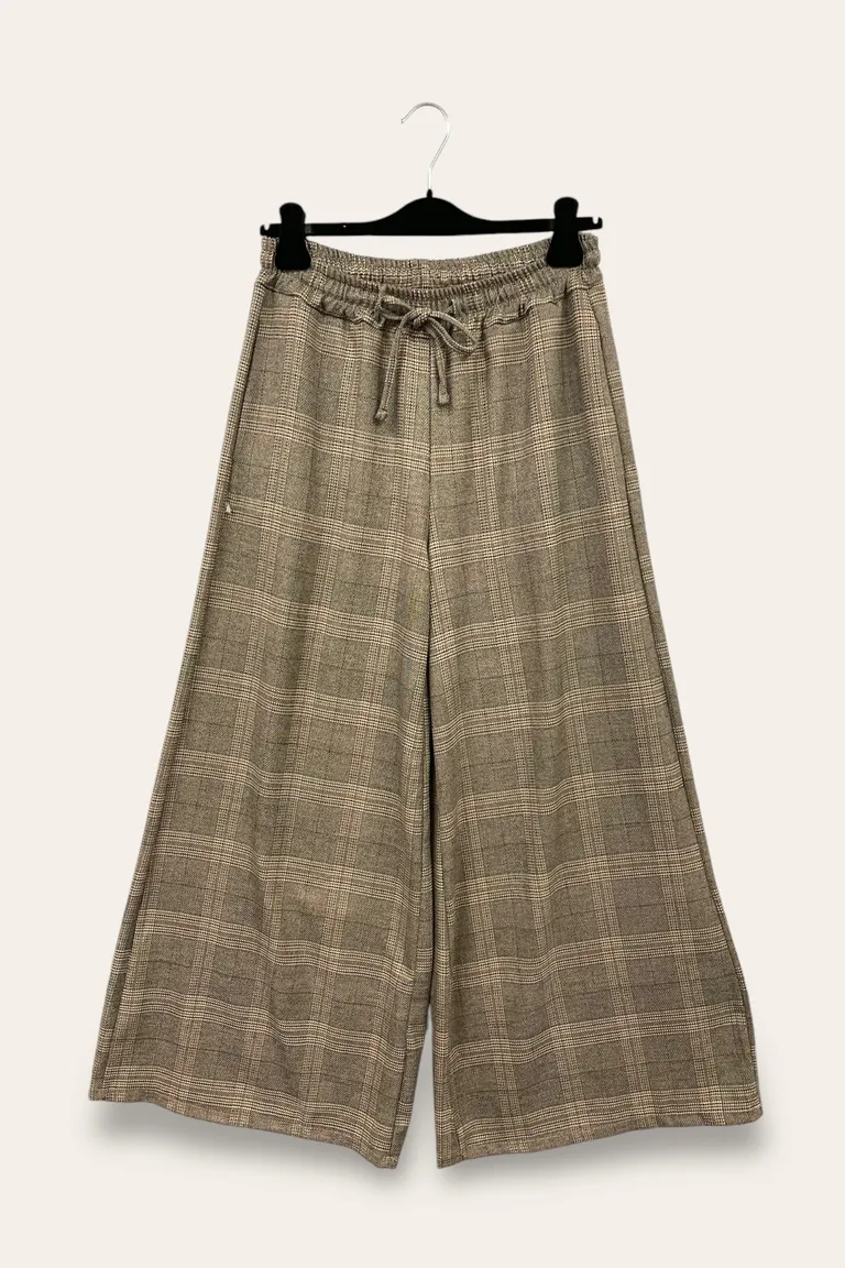 Description Pantalone in principe Galles con elastico e laccio in vita