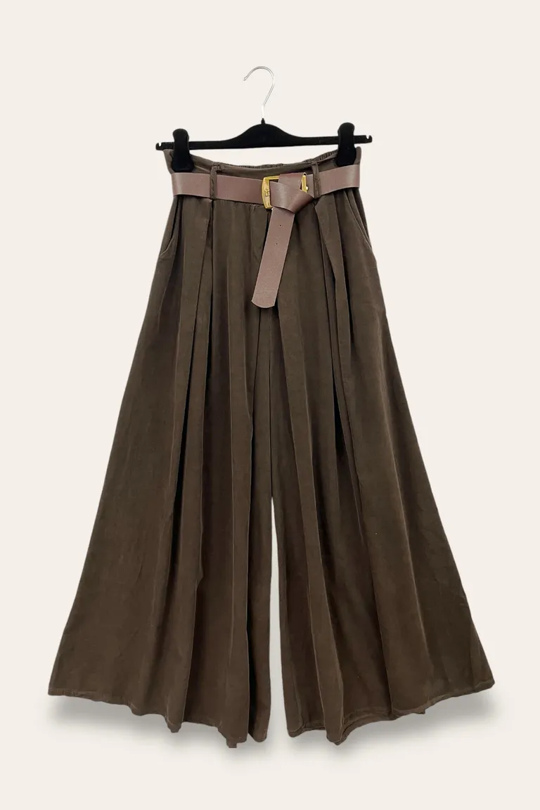 Pantalone a gamba larga in velluto millerighe