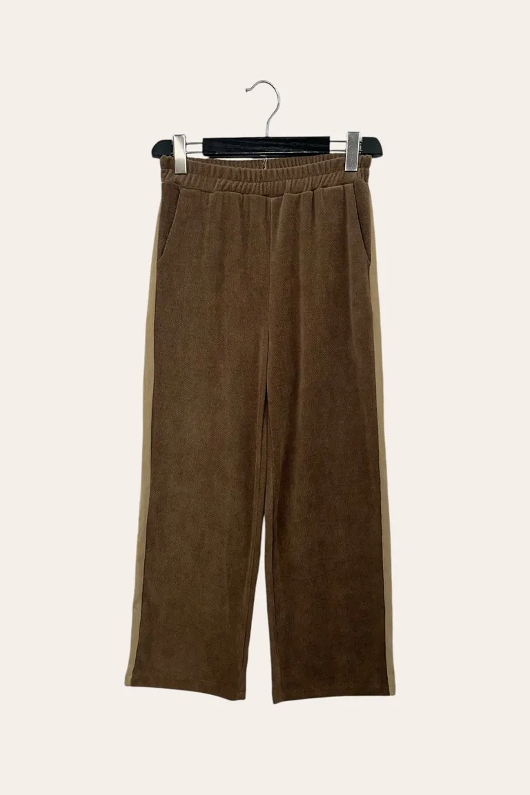 Description Pantalone in velluto a nido d’ape, con banda laterale a contrasto