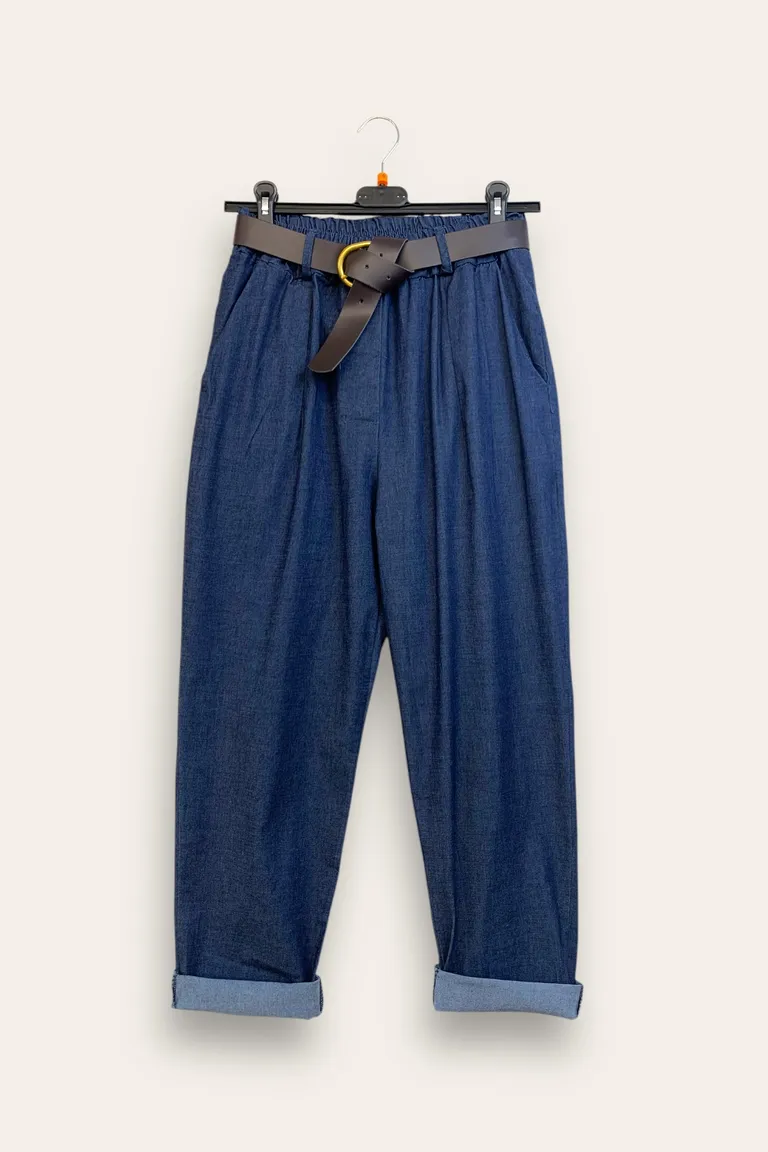 Pantalone a sigaretta in chambray, elastico in vita