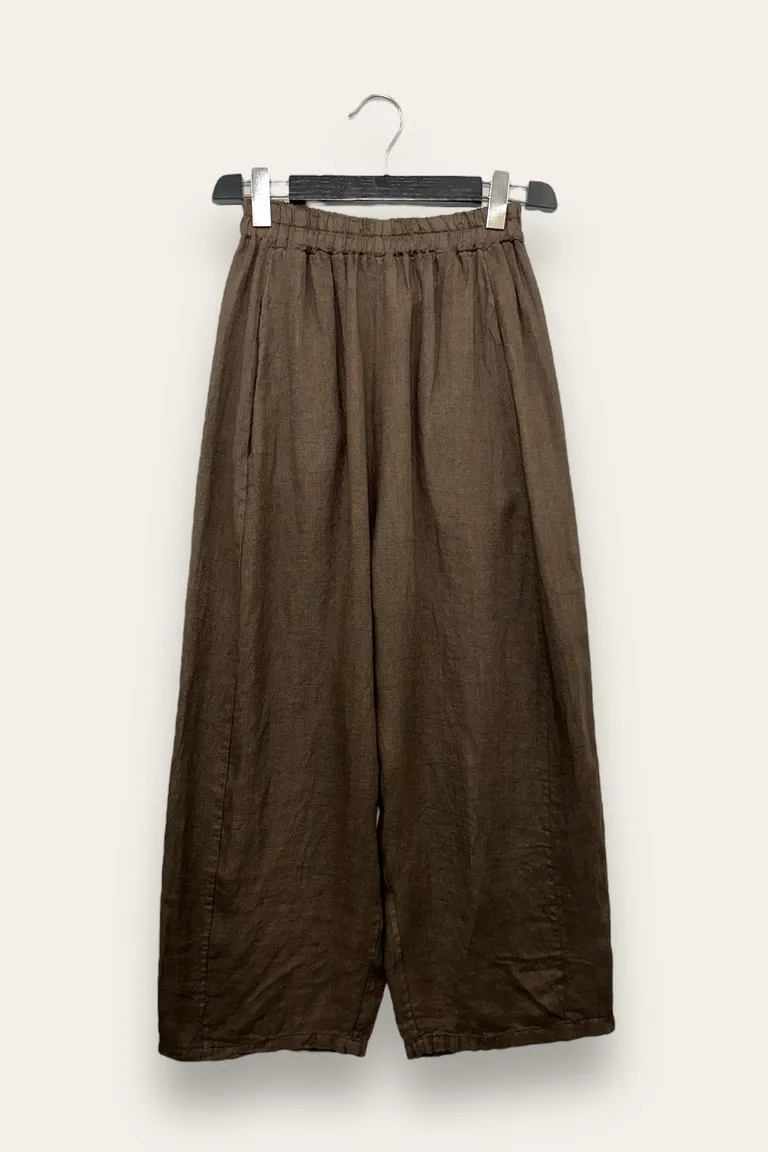 Pantalone in lino a palazzo con elastico in vita